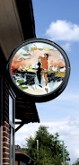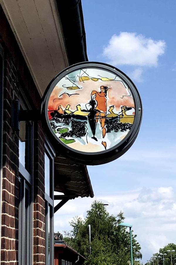 Von den Zügen aus zu sehen: Der Bahnhof Dorum ist fertig beschildert und in der alten Bahnhofsuhr leuchten meine Zeichnungen bei Nacht!
